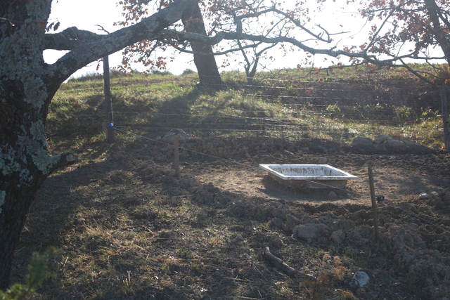 | ik kan er niet aan doen, maar opeens vind ik die douchebak-annex-voederbak ontzettend poëtisch...Dat licht, die modder overal behavle rond die bak, het eikje.... |